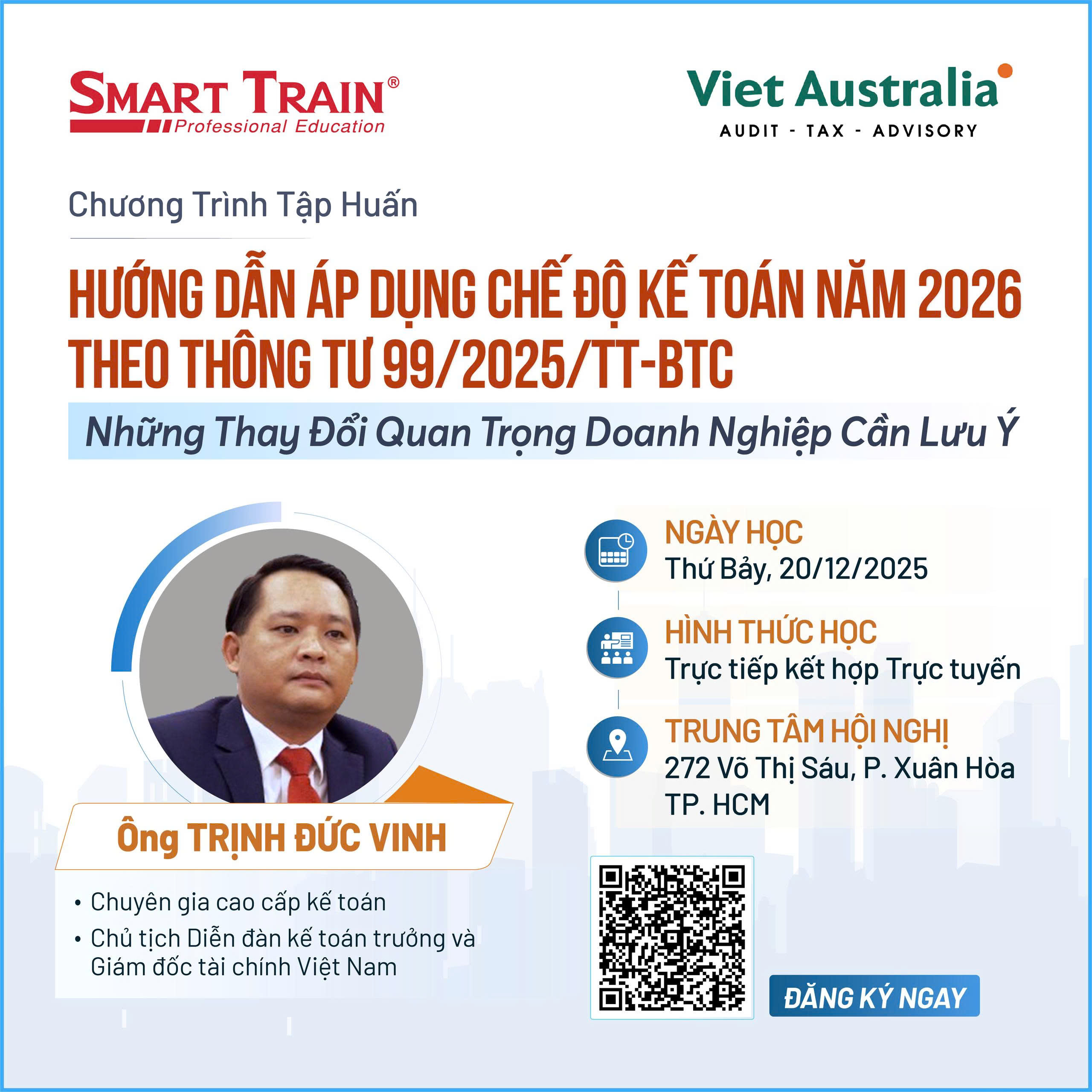 Khai giảng khóa: Chương trình tập huấn “Hướng dẫn áp dụng chế độ kế toán 2026 theo Thông tư 99/2025/TT-BTC Thời lượng: 1 ngày |