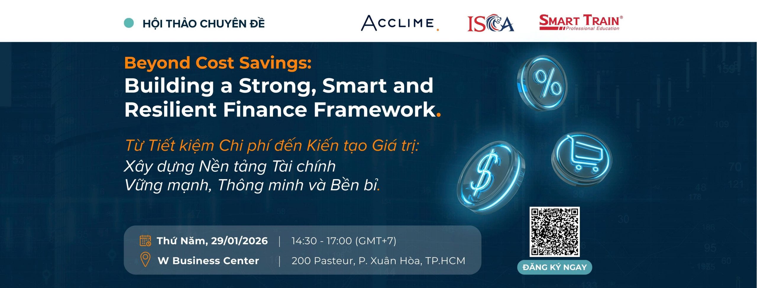 Với mục tiêu chia sẻ các góc nhìn thực tiễn về cách thức phát triển năng lực tài chính song hành cùng quy mô doanh nghiệp, đồng thời biến dữ liệu chi phí thành công cụ sắc bén cho các quyết định quản trị, Smart Train Academy phối hợp cùng Acclime Việt Nam và Viện Kế toán Công chứng Singapore (ISCA) Việt Nam trân trọng kính mời Quý Anh/Chị tham dự hội thảo chuyên môn với thông tin chi tiết như sau