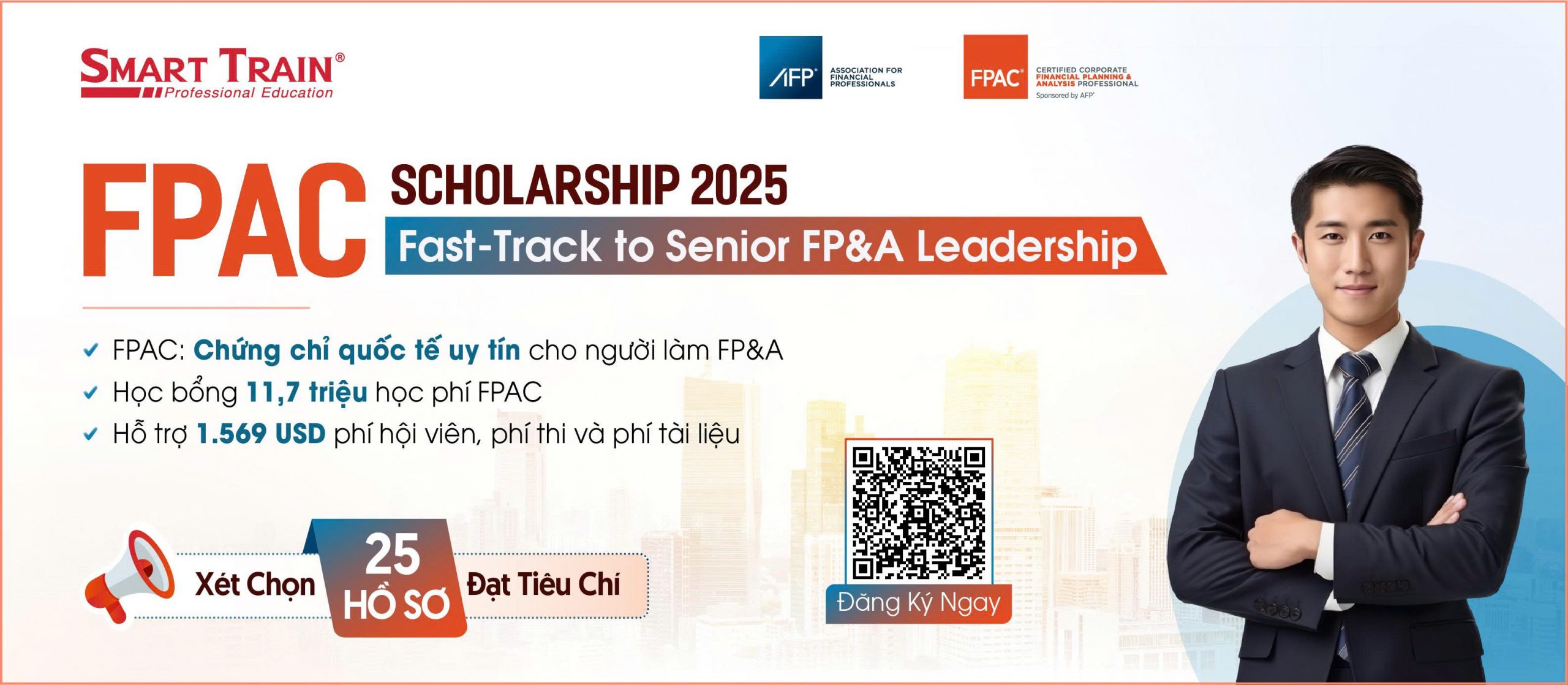 Đồng hành cùng bạn nắm bắt cơ hội này, Smart Train Academy – đối tác đào tạo ĐẦU TIÊN và DUY NHẤT được AFP ủy quyền tại Việt Nam – trân trọng giới thiệu chương trình HỌC BỔNG “FPAC – FAST TRACK TO SENIOR FP&A LEADERSHIP”. Đây là con đường sự nghiệp giúp bạn ngừng làm một người ghi nhận số liệu và bắt đầu trở thành một nhà kiến tạo tương lai tài chính cho doanh nghiệp