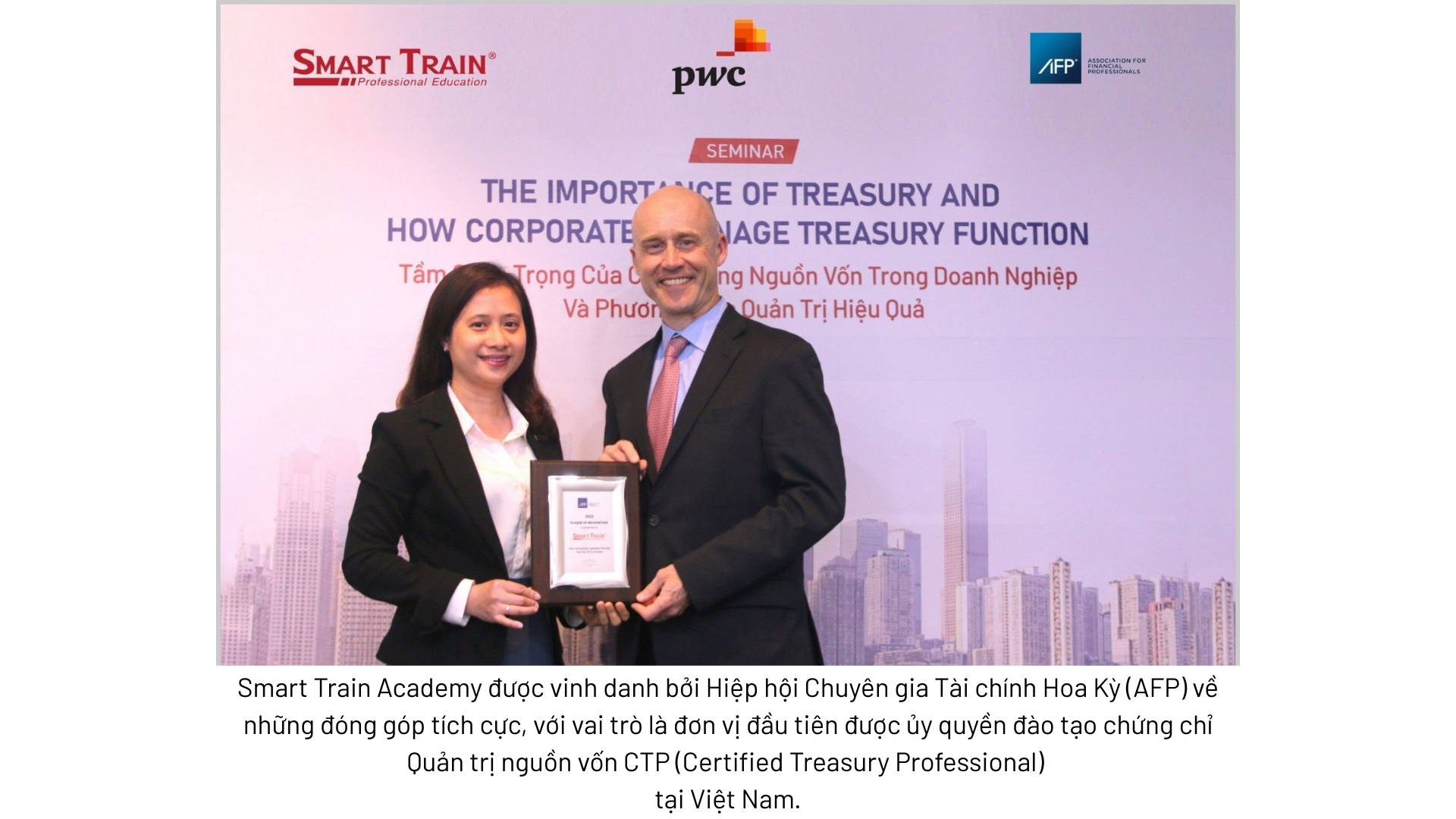 Smart Train Academy là học viện duy nhất tại Việt Nam được cấp quyền đào tạo chính thức bởi 6 hiệp hội kế toán, kiểm toán, tài chính uy tín lớn trên thế giới: Hiệp hội Kế toán Công chứng Anh Quốc (ACCA), Hiệp hội Kế toán Quản trị Hoa Kỳ (IMA), Hiệp hội Kiểm toán Nội bộ Công chứng (IIA), Viện CFA Hoa Kỳ (CFA Institute), Hiệp Hội Chuyên Gia Tài Chính Hoa Kỳ (AFP) và Viện Kế toán công chứng Singapore (ISCA) . Chi tiết về các Hiệp hội được cập nhật TẠI ĐÂY.
