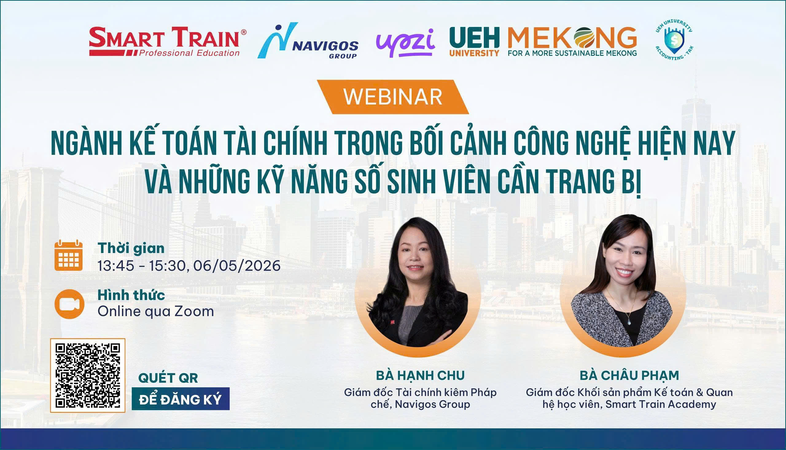 Thấu hiểu vấn đề đó, để giúp các bạn sinh viên cập nhật xu hướng, giải đáp lộ trình chinh phục các chứng chỉ danh giá và mở ra những hướng đi đột phá trên hành trình phát triển sự nghiệp của chính mình, Smart Train Academy phối hợp cùng Navigos Group, Phân hiệu Đại học Kinh tế TP. Hồ Chí Minh tại Vĩnh Long (UEH Mekong) và Câu lạc bộ Kế toán – Thuế tổ chức buổi Workshop với thông tin chi tiết như sau: