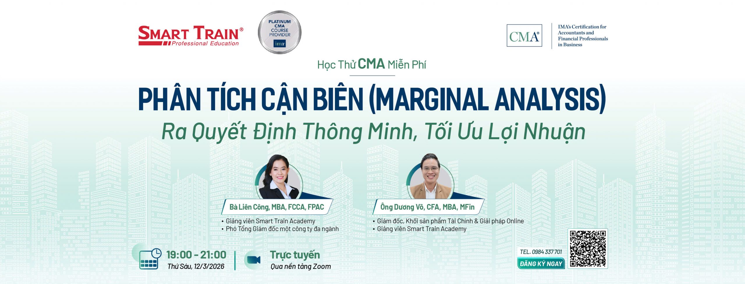 Hãy trang bị cho mình kiến thức nền tảng và kỹ năng ứng dụng thực tế cùng một buổi học chuyên đề trong môn học Business Decision Analysis thuộc chương trình Kế toán quản trị Hoa Kỳ CMA tại Smart Train Academy – Đối tác đào tạo CMA đạt chuẩn chất lượng BẠCH KIM (Platinum CMA Course Provider) duy nhất tại Việt Nam của Hiệp Hội Kế toán Quản trị Hoa Kỳ IMA với thông tin chi tiết như sau: