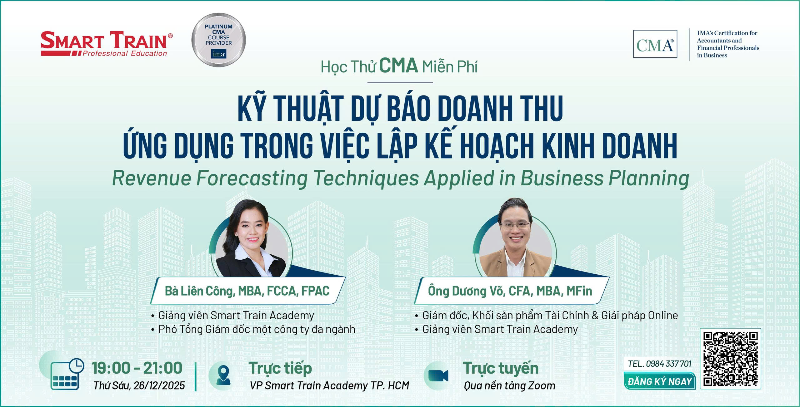 | 19:00 – 20:10 | Kỹ thuật dự báo doanh thu – Ứng dụng trong việc lập kế hoạch kinh doanh |